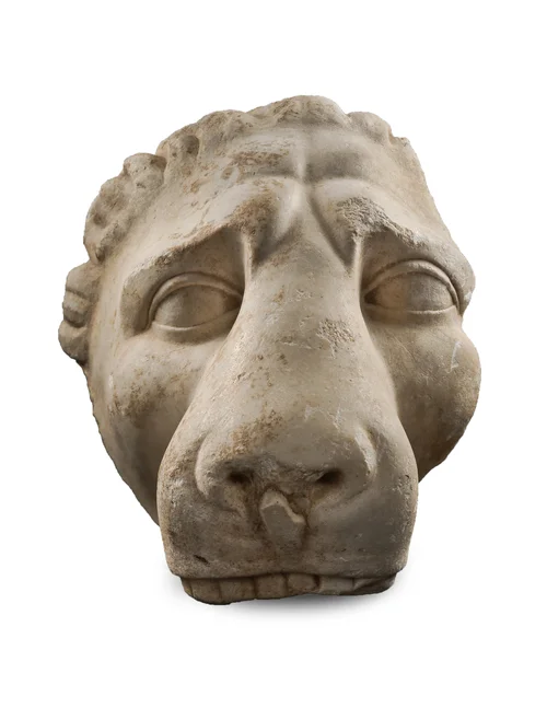 Excellent state of preservation; complete except for the damaged tip of the proper left leg; surface weathered and worn; a few cracks, chips and dents, small hole in the back of the proper right leg.